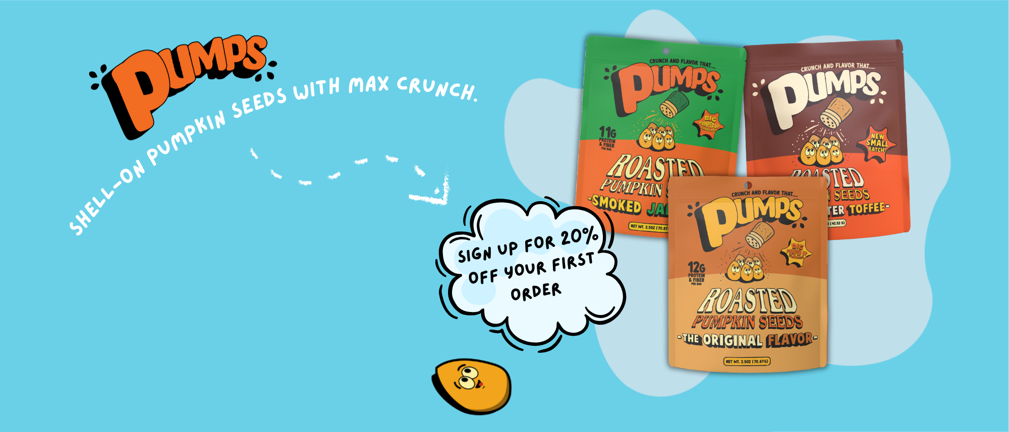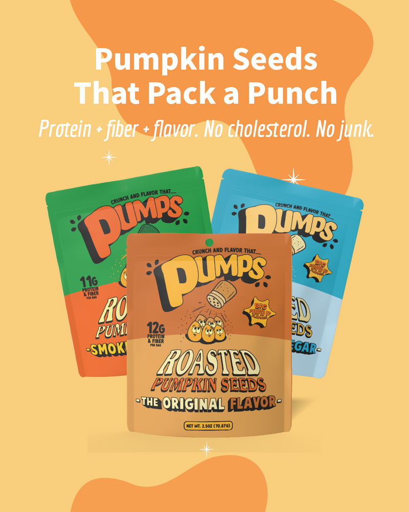A Pump is a pumpkin seed with a little magic. It keeps its shell, dives into bold seasoning, and roasts until it’s crackling with crunch. Eat it whole and discover a seed that tastes bigger than itself.