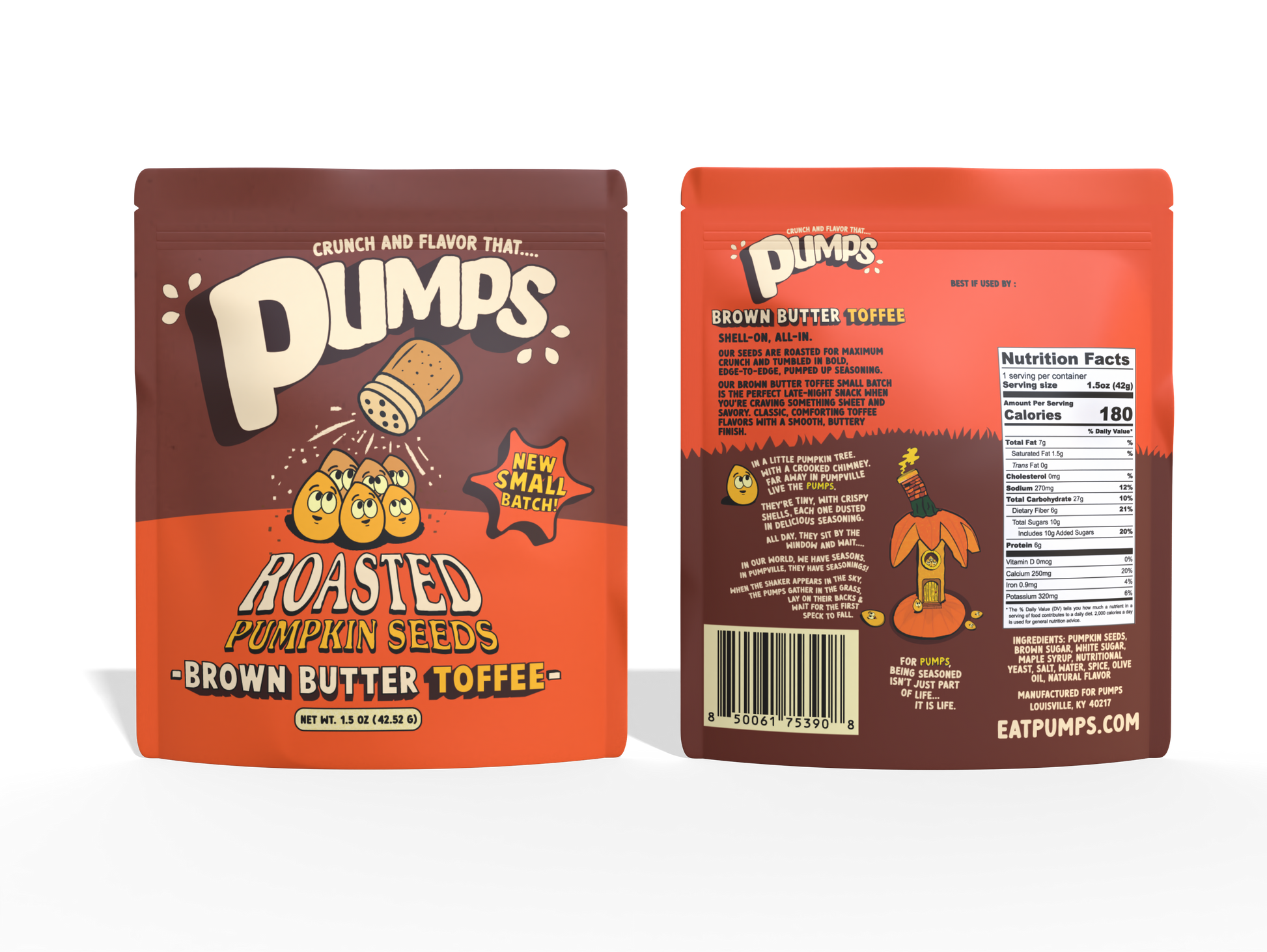 Our Brown Butter Toffee pumpkin seeds were crafted as a small-batch, sweet-and-salty snack designed to satisfy a late-night craving without feeling over the top. We blended familiar toffee notes with a light, buttery finish, then roasted premium pumpkin seeds to deliver a consistent, satisfying crunch. Each batch was seasoned edge-to-edge for bold flavor in every bite.