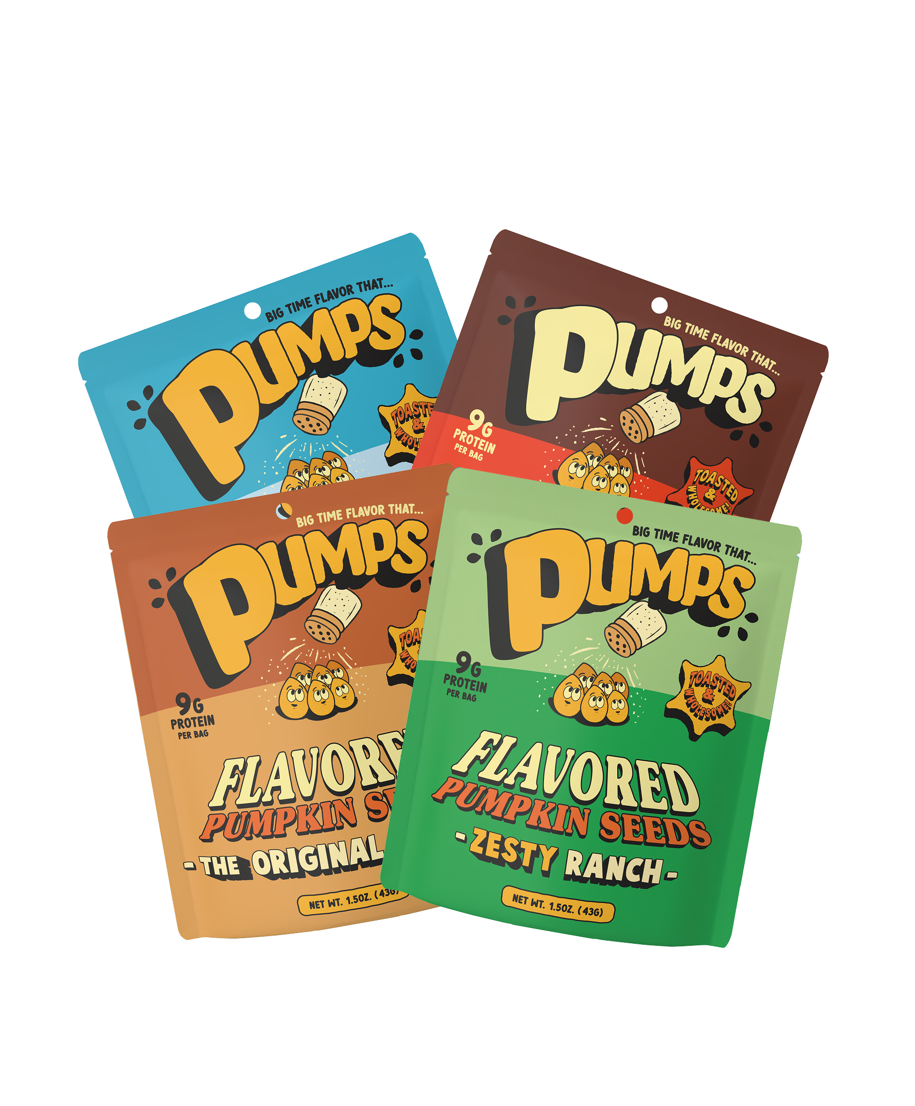 The Pumps Starter Pack is your all-access pass to bold, craveable snacking. Inside, you’ll get one bag of each shell-off flavor, perfectly toasted for a light crunch and coated in signature seasoning that brings big taste to every bite.